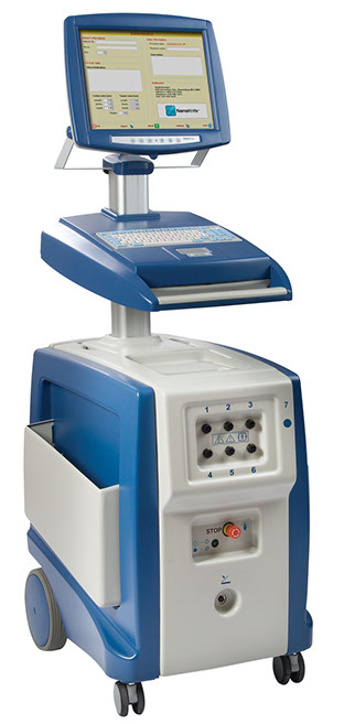 El sistema NanoKnife utiliza series rápidas de alto voltaje y corriente eléctrica directa para crear nano-orificios en las membranas celulares. Los pulsos eléctricos son liberados a través de varias agujas que son colocadas alrededor del tejido objetivo.